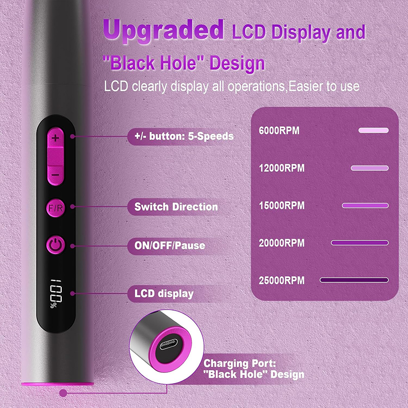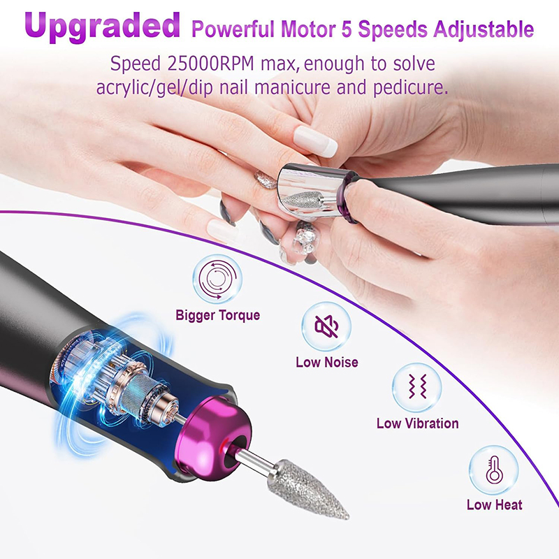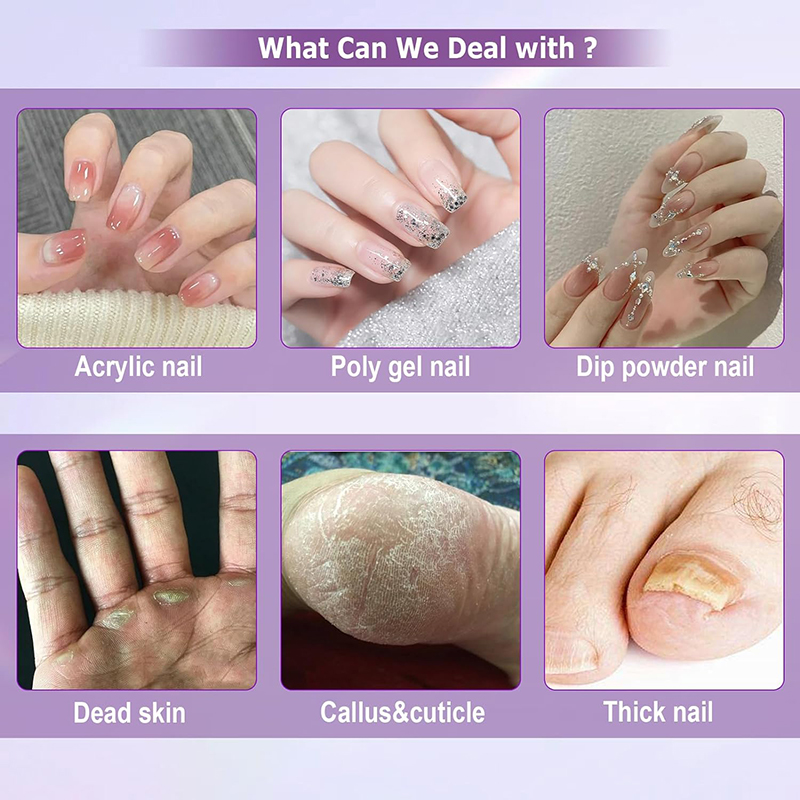전기 네일 드릴 머신 업그레이드된 강력한 모터는 아크릴 네일, 폴리 젤 네일, 딱정벌레 젤, 딥 파우더 네일, 큐티클, 죽은 피부, 굳은살 및 두꺼운 손톱 제거를 포함하여 모든 매니큐어 및 페디큐어 요구 사항에 적합합니다.