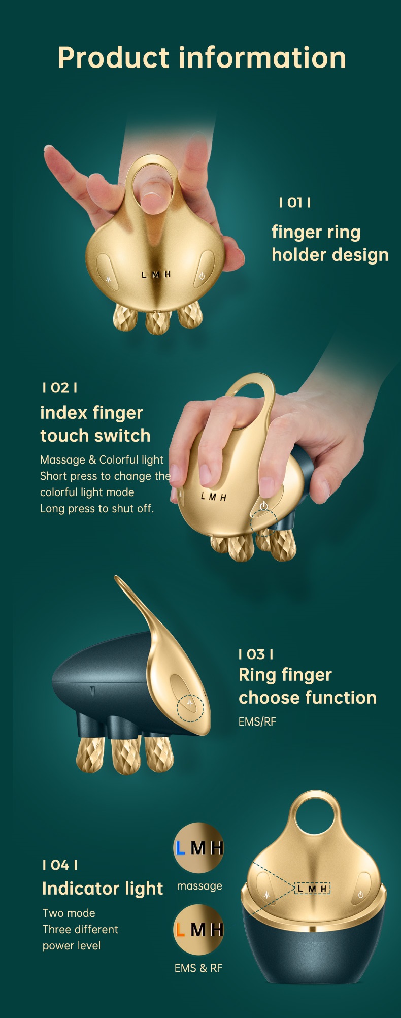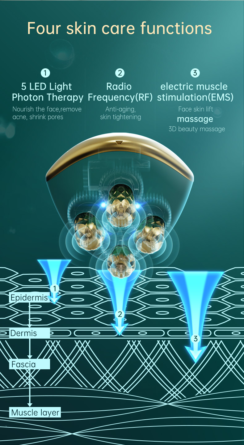2. 마사지+EMS+RF 다기능, 3단계 속도 및 강도 조절 가능