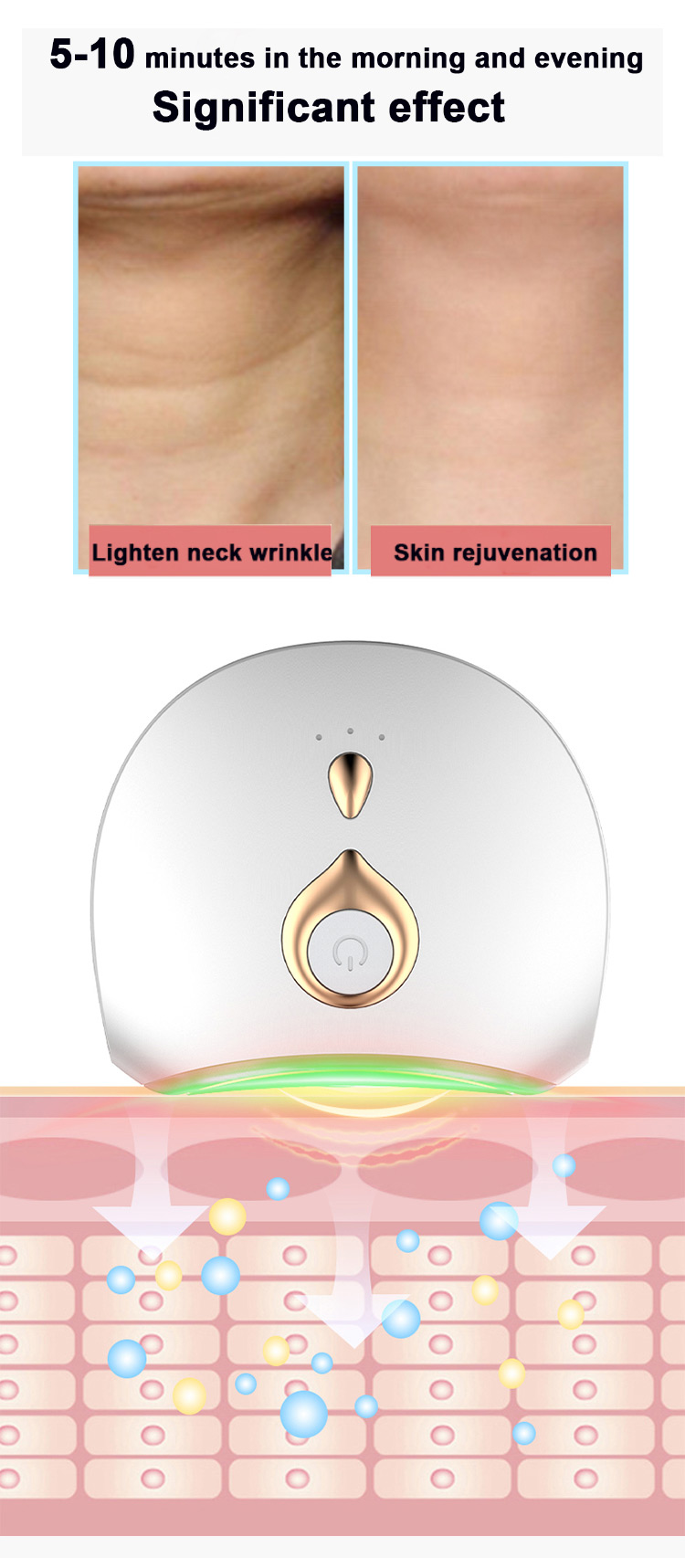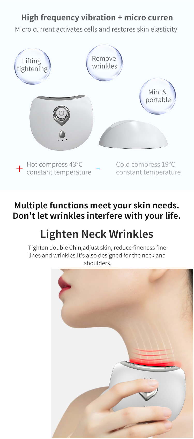 EMS 및 고주파 진동, 잔주름을 부드럽게하고 목 주름을 제거합니다.