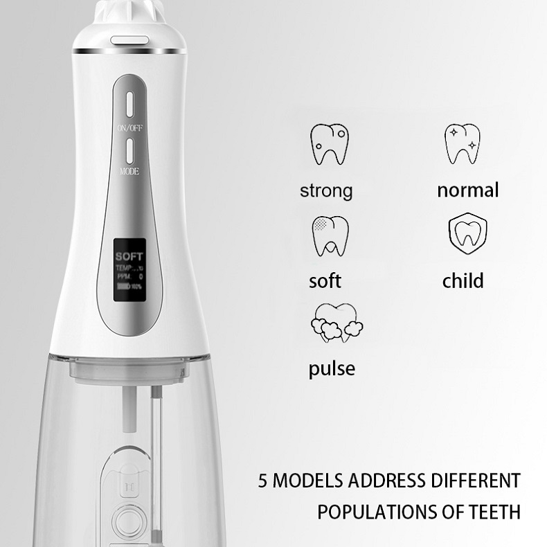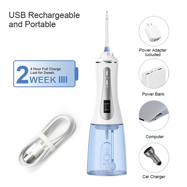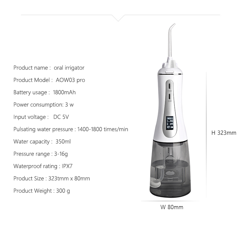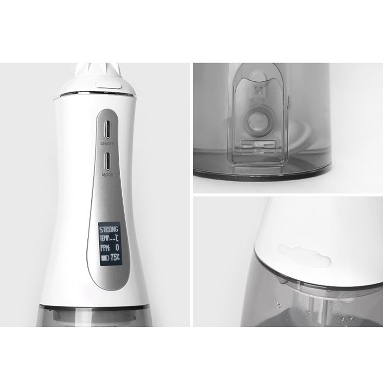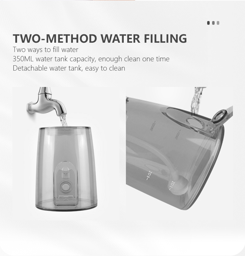 이 수중 치실은 업그레이드된 350ml 물탱크를 갖추고 있어 다른 기존 모델보다 용량이 2배 더 많아 자주 재충전할 필요가 없으며 구강 청소를 더욱 편리하고 효율적으로 만들어줍니다.