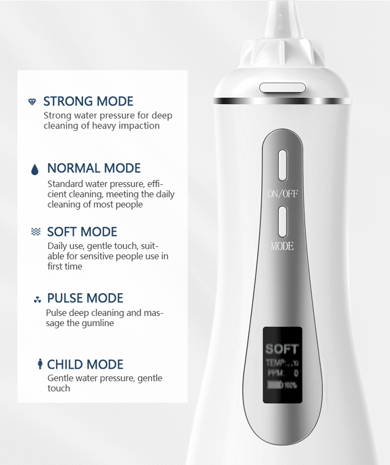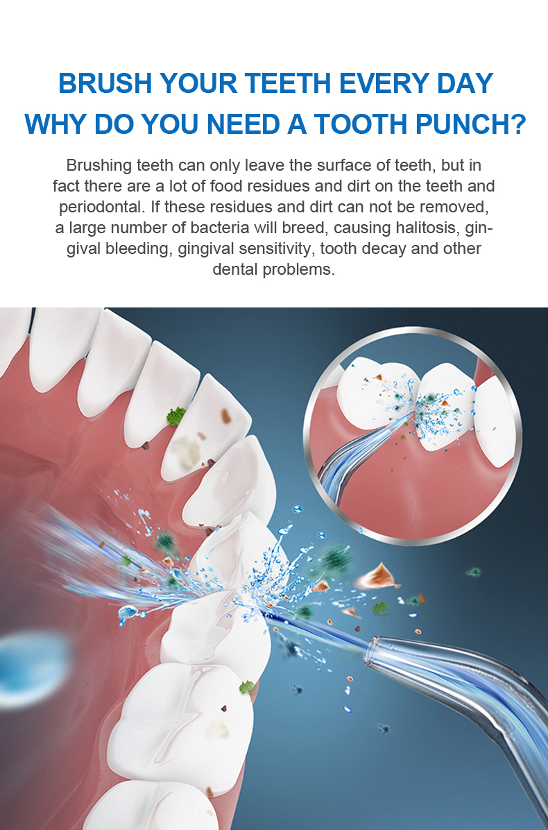 이 워터 덴탈 픽은 분당 1400-1800회 높은 수압 펄스를 전달하여 치아 깊은 곳까지 청소할 수 있도록 치아 플라그를 99.9% 효과적으로 제거합니다. 잇몸 마사지, 혈액순환 촉진, 구취, 치아교정 등 구강 문제를 해결해주는 워터 덴탈픽