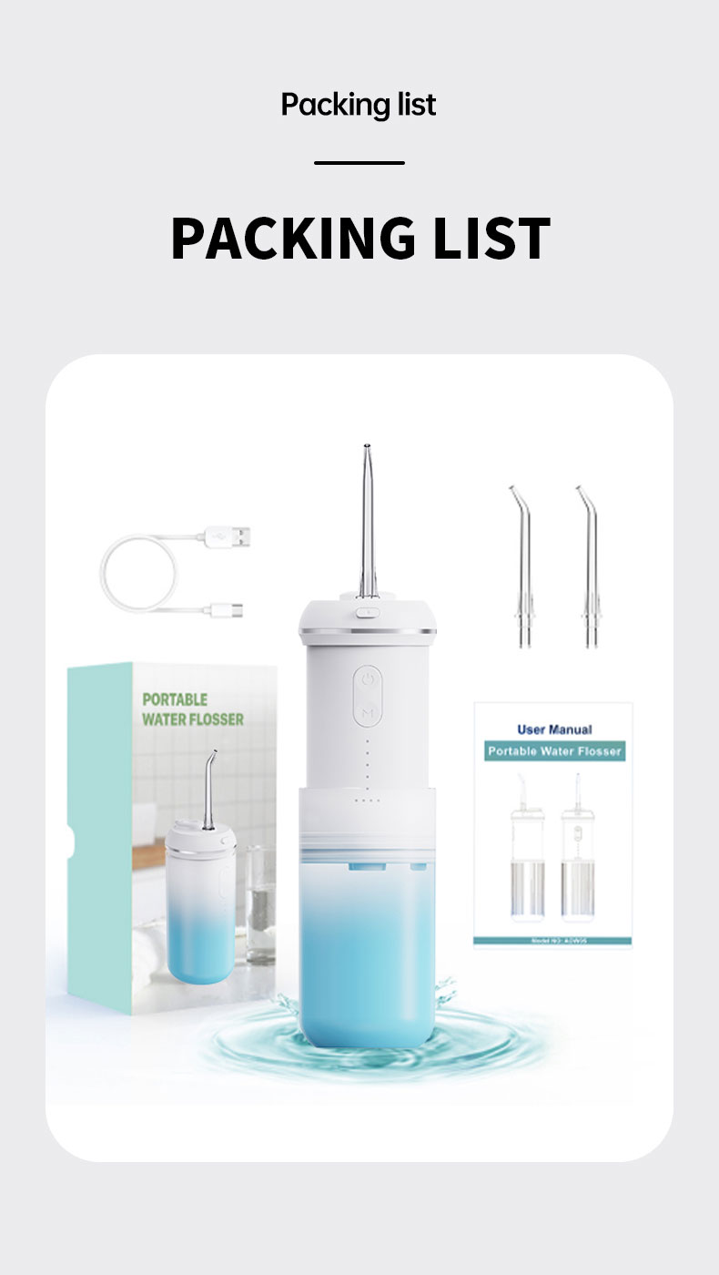 IPX7 Waterproof & 2 Years Durablility: This cordless water dental flosser is built to last with IPX7 waterproofing, allowing for easy cleaning and safe use in the shower. The upgraded motor provides more effective cleaning and increased durability, lasting up to 2 years - 30 Days Extended Battery Life for On-the-Go Use: The portable water dental flosser features a powerful eco-friendly battery that lasts double the time of other models. With just 3 hours of charging, you can enjoy up to 30 days of use. Its compact and lightweight design makes it perfect for use at home or on-the-go, and it comes with a USB cable (adapter not included) for easy charging.Note:Only 5V/1A/2A/3A adapter is suitable, Please use the correct adapter for charging