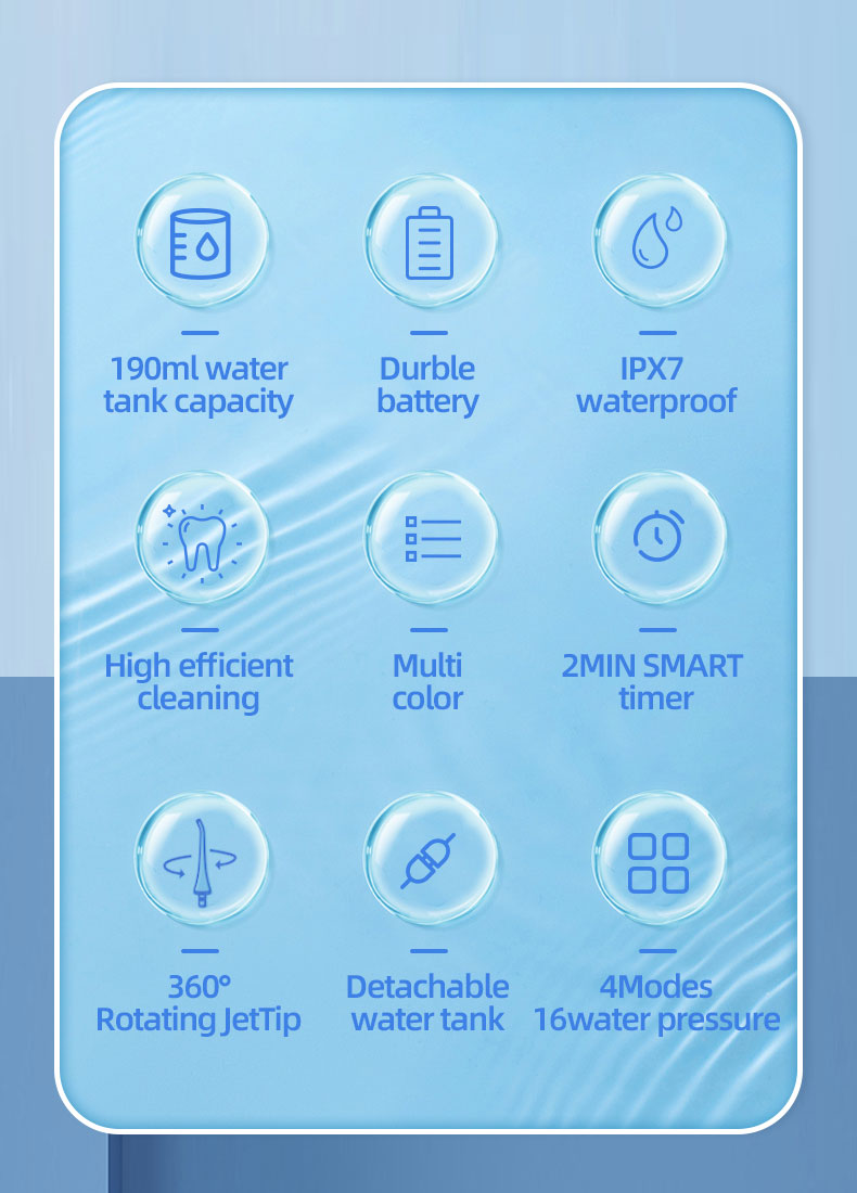 - BPA Free Upgraded 190ml Extra-Large Water Tank, Wide Mouth, Easy to Clean & Refill: Equipped with a 190ml extra-large detachable water tank, this cordless water dental flosser pick eliminates the need for repeated refills during a single use, more convenient. Additionally, the wide mouth reservoir design not only makes it easier to refill, but also solves the problem of difficult cleaning in traditional models. Easy to thoroughly cleans every corner and ensures your cleaning safe
