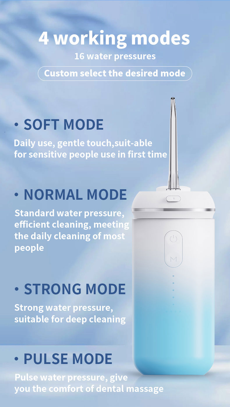 - Upgrade 4 Modes with DIY Choice: This cordless water dental flosser pick has been upgraded to DIY mode, allowing you to customize your own cleaning mode based on your teeth conditions to protect your gums, more suitable for people with gums. It also has a memory function for one-click use next time. This water dental flosser pick takes better care of your cavity in a more scientific way and is also very easy to use